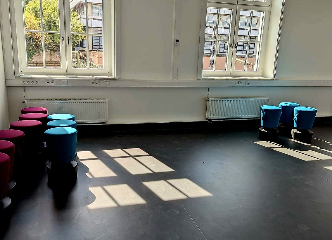 In der Bundesbahndirektion wird es eine Fläche von ca. 190 qm geben, in der es Aufenthaltsmöglichkeiten für Studierende aller Fakultäten gibt. Die Fläche wird in einen Aufenthaltsbereich, einen Gruppenarbeitsbereich und einen Ruhebereich zum Lernen unterteilt sein. Dieser Teil wird allerdings erst im Laufe des Wintersemesters 2025/26 in Betrieb genommen. Die Aufenthaltsräume für Studierende befinden sich in BBD.03.53 (3. Etage, Raum 53)